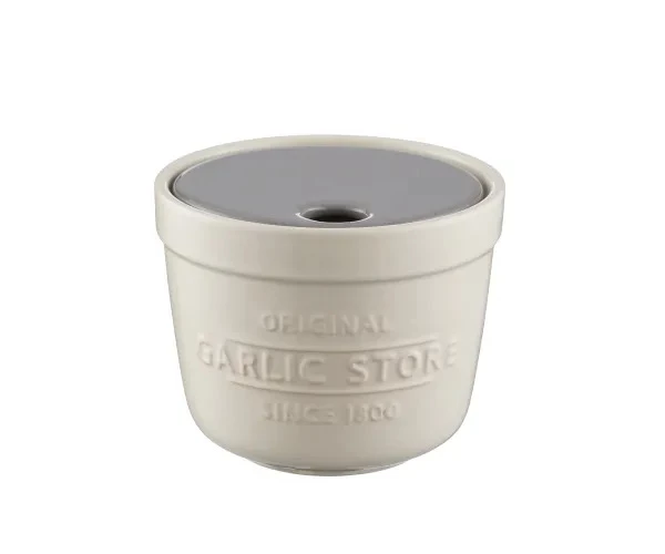 This garlic store has air vents for keeping garlic fresher for longer and the lid incorporates a grater for garlic or ginger.